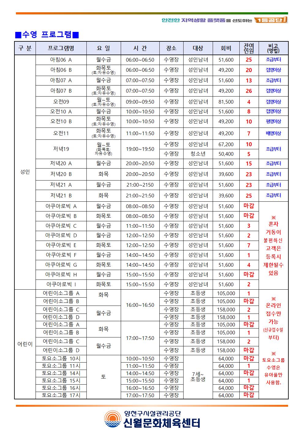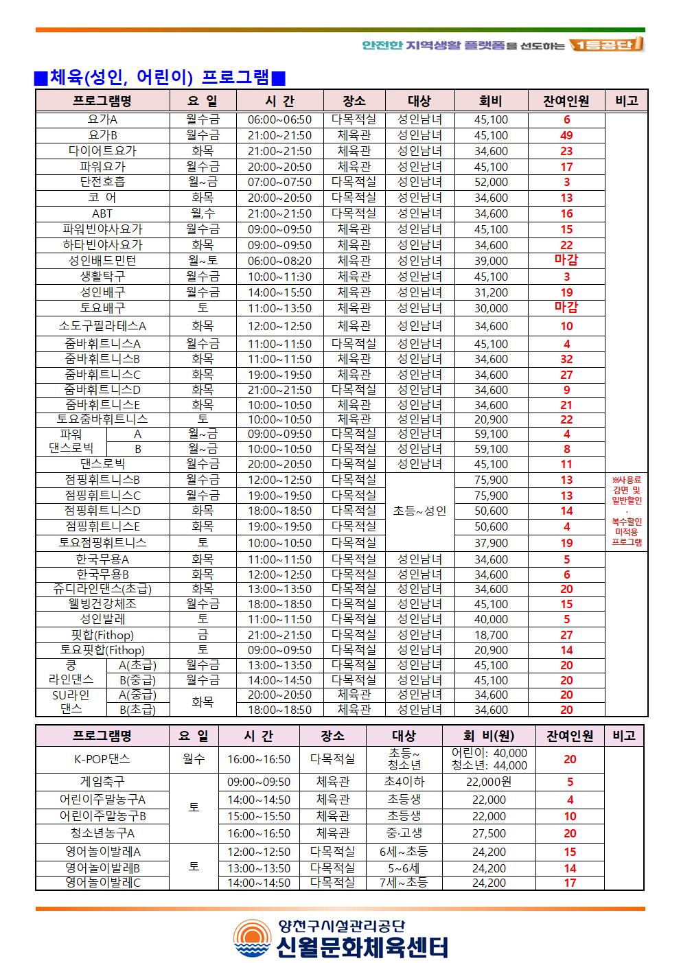 신월문화체육센터 신월문화체육센터 4월 회원 모집 안내