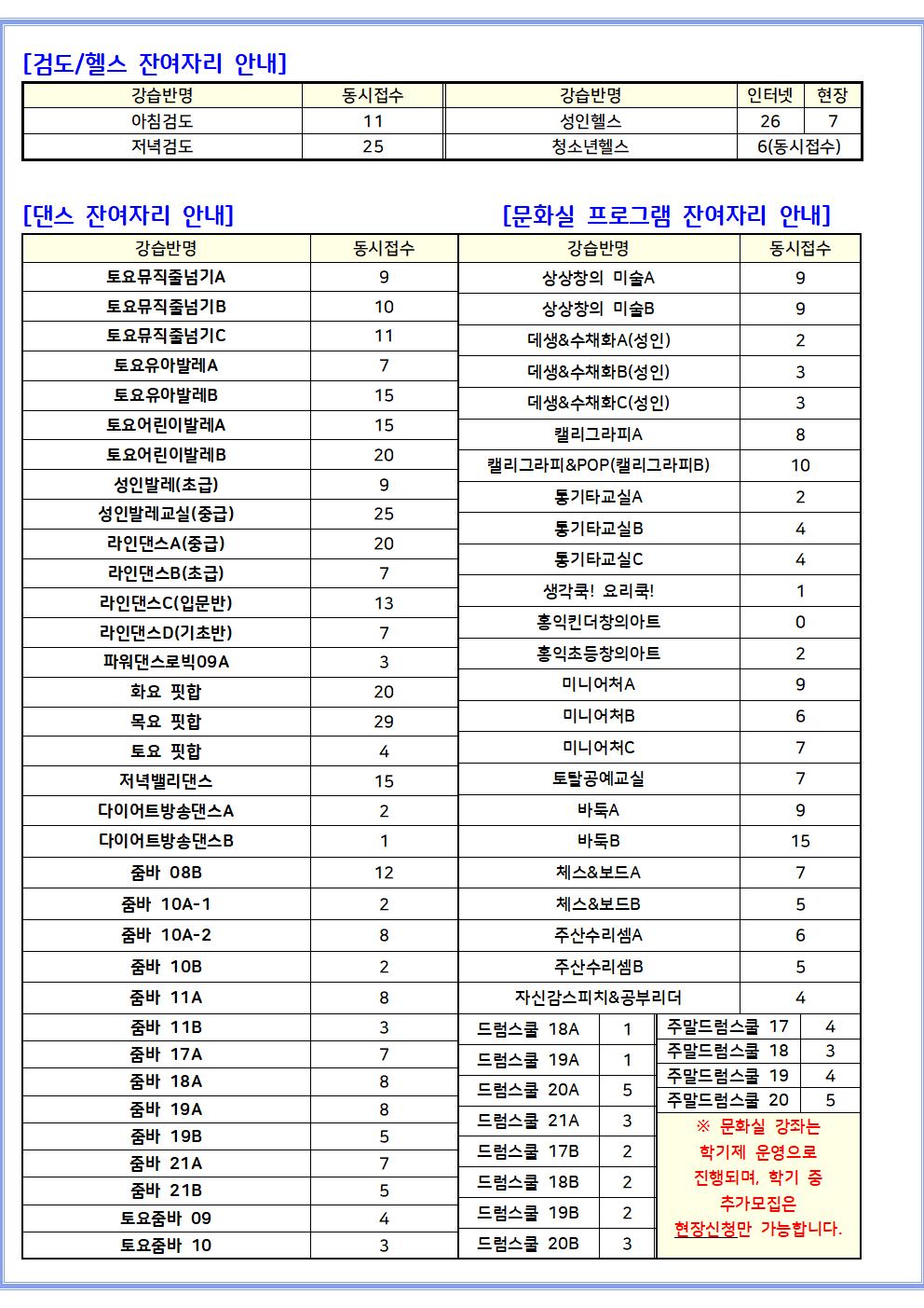 아래 게시물은 잔여자리만 안내되어 있으니 기타 자세한 내용은 홈페이지 이용안내 및 프로그램 안내를 참고해주세요