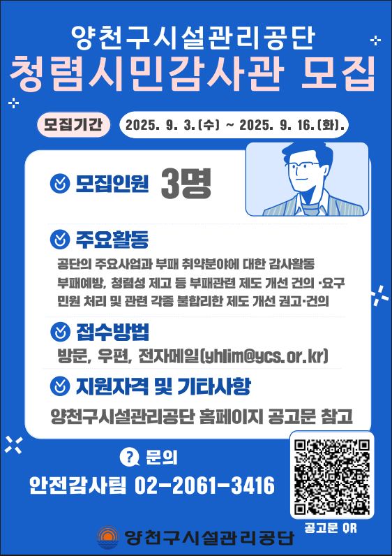목동문화체육센터 양천구시설관리공단 청렴시민 감사관 모집 작성자 임혜연 등록일자 2025년 9월 3일 17시 50분 44초 조회 169 캡처.JPG [ Size : 92.52KB , Down : 39 ] 미리보기 다운로드 목록보기