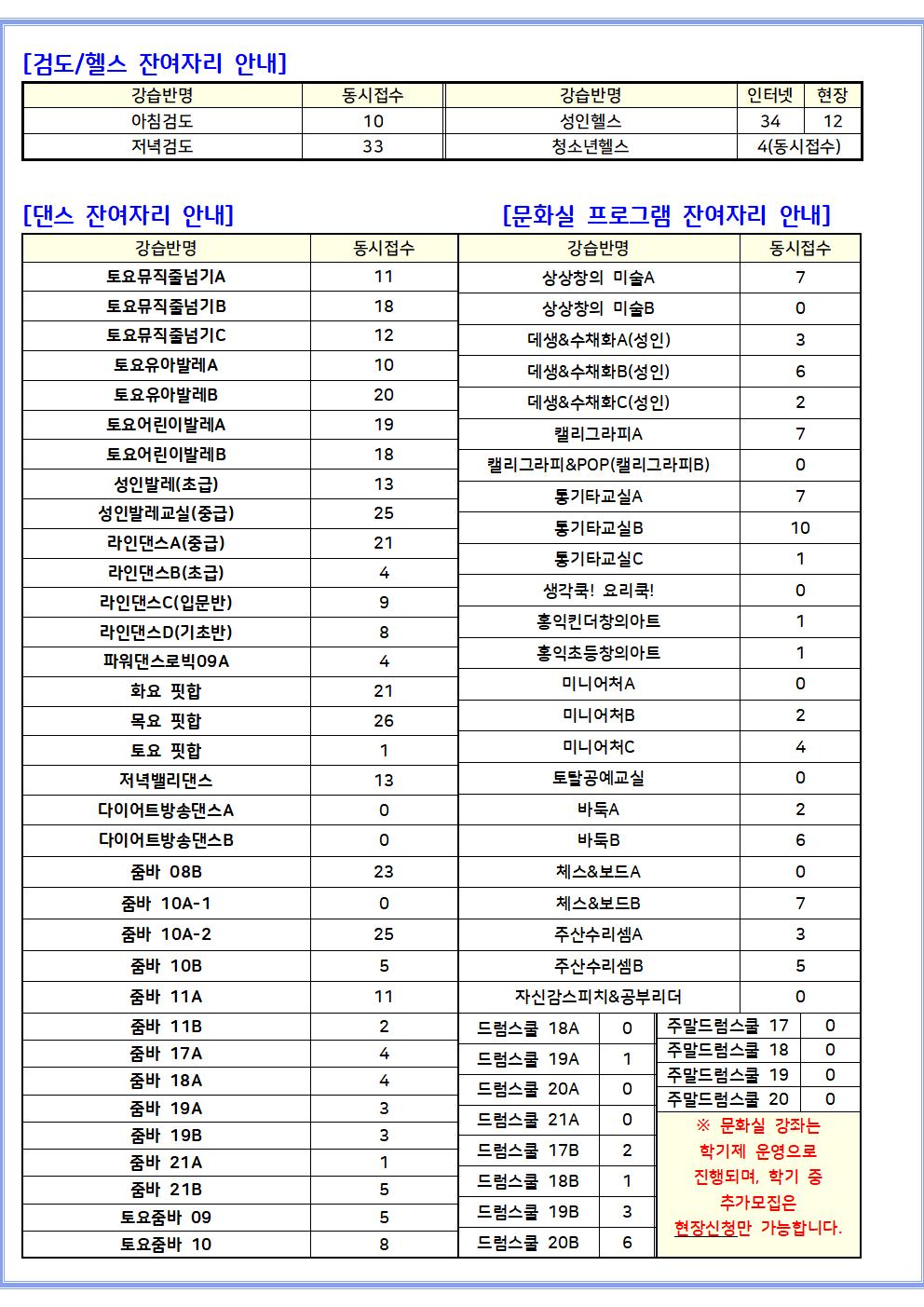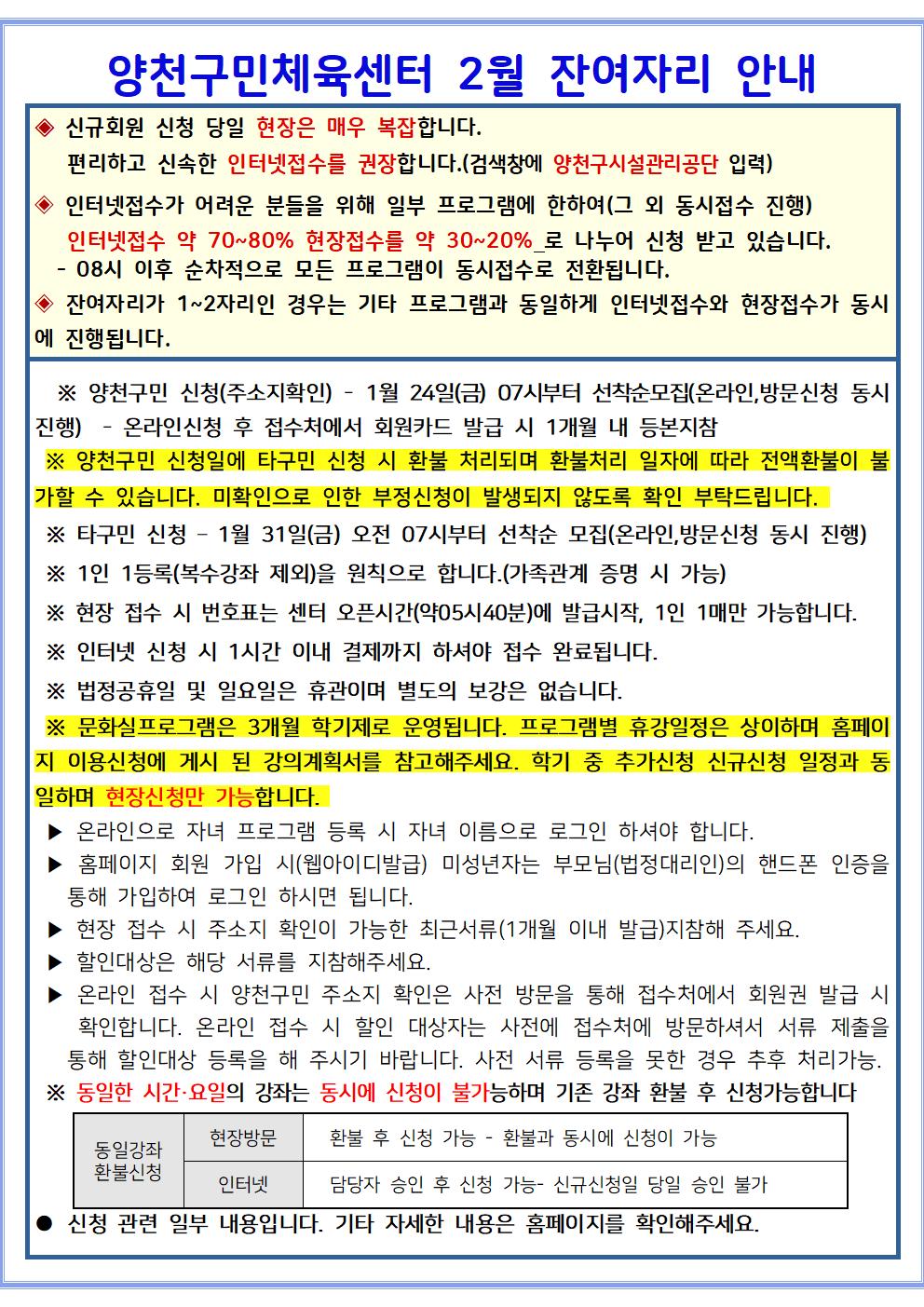 양천구민체육센터 양천구민체육센터 2월 프로그램 잔여자리 안내