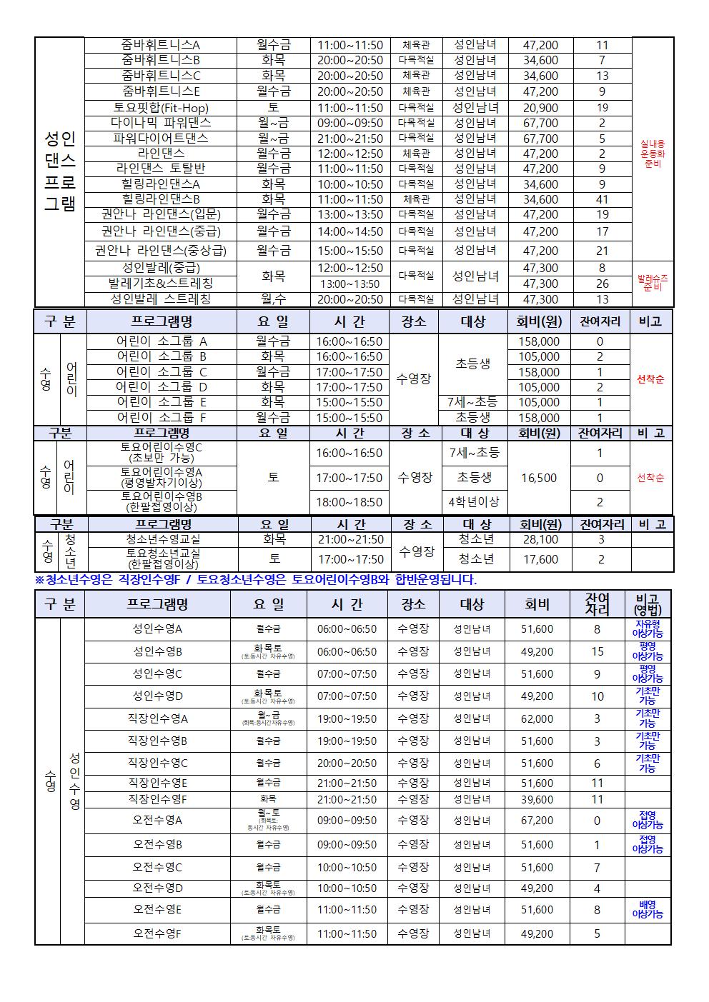 목동문화체육센터 목동문화체육센터 9월 회원모집 잔여인원 안내 작성자 문모다 등록일자 2025년 8월 23일 17시 25분 13초 조회 831 목동센터 9월 회원 모집 안내지-잔여자리001.jpg [ Size : 253.94KB , Down : 1,191 ] 미리보기 다운로드 목동센터 9월 회원 모집 안내지-잔여자리002.jpg [ Size : 328.48KB , Down : 1,174 ] 미리보기 다운로드 목동센터 9월 회원 모집 안내지-잔여자리003.jpg [ Size : 319.71KB , Down : 1,183 ] 미리보기 다운로드 목동센터 9월 회원 모집 안내지-잔여자리004.jpg [ Size : 277.73KB , Down : 1,166 ] 미리보기 다운로드 목록보기