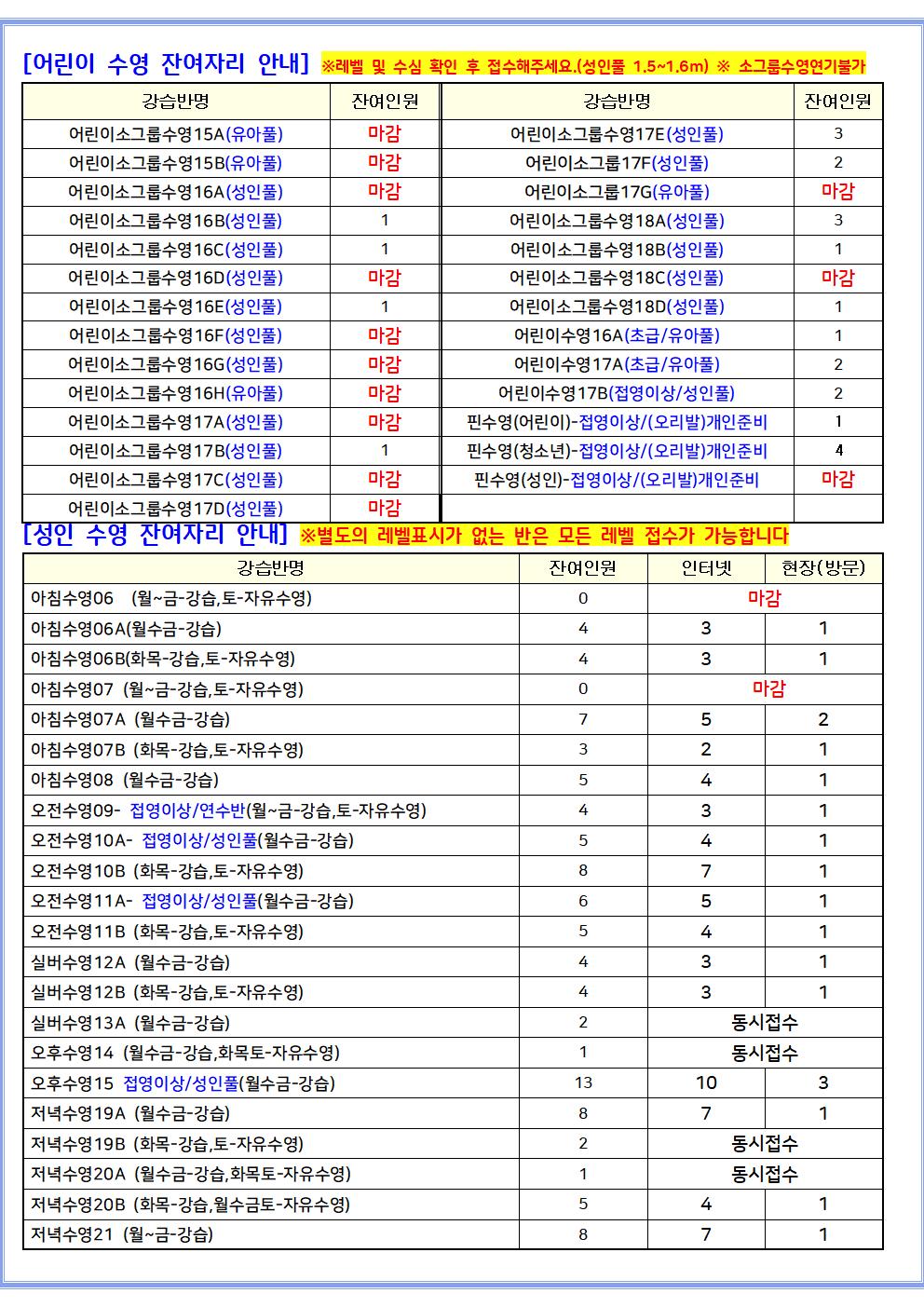 ♣ 잔여자리 안내 게시물 입니다. 이 외 다른 내용은 이용안내 및 프로그램 안내를 확인해주세요.