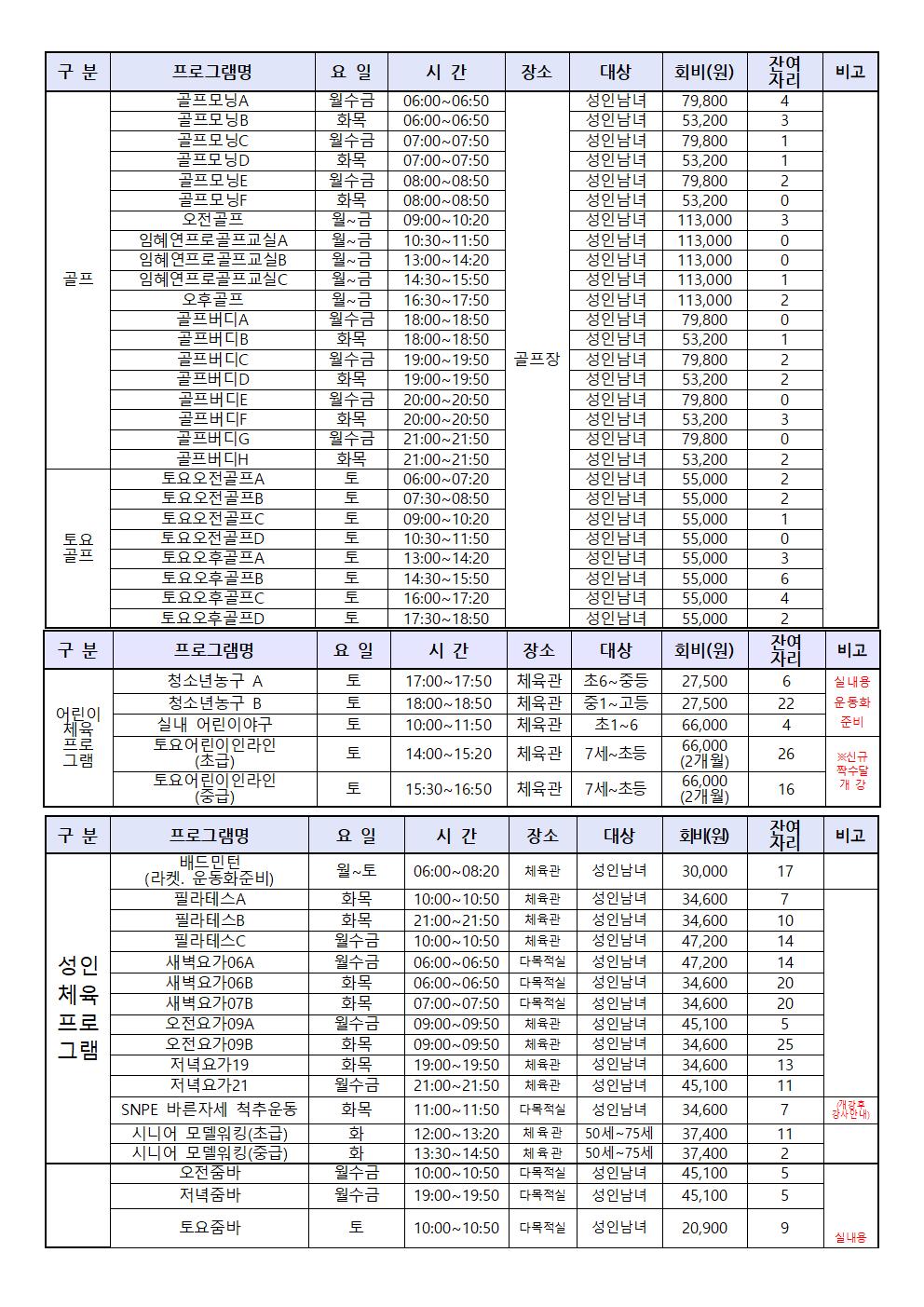 목동문화체육센터 목동문화체육센터 12월 프로그램 잔여자리 안내