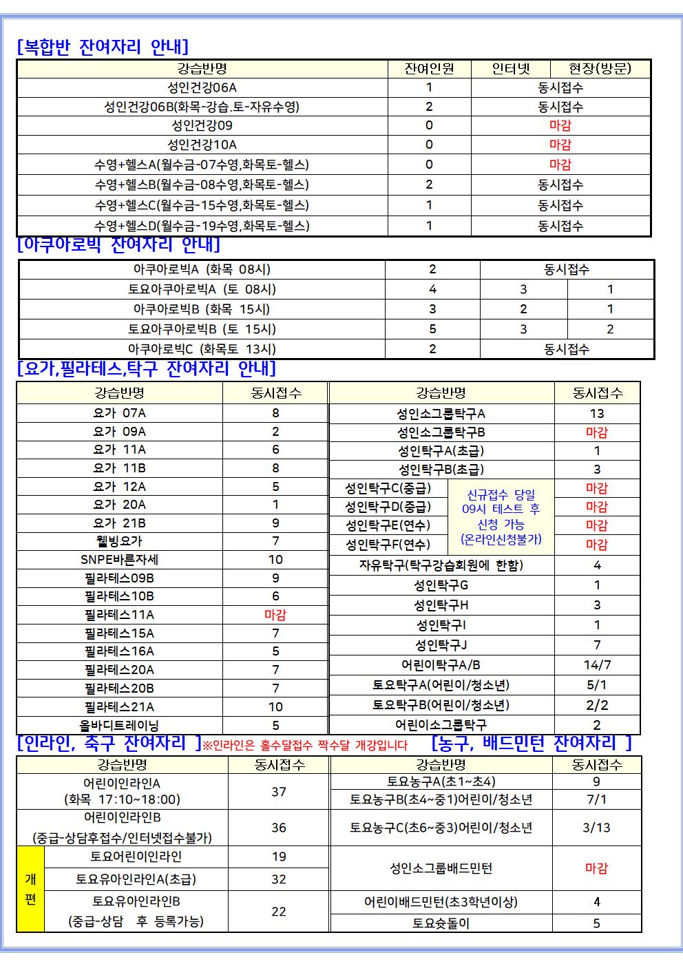 잔여자리 관련 게시물입니다.