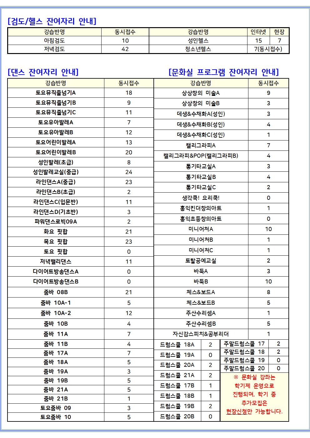 양천구민체육센터 양천구민체육센터 4월 프로그램 잔여자리 안내