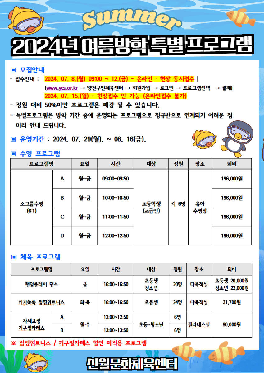 신월문화체육센터 신월문화체육센터 여름방학 프로그램 안내 작성자 문모다 등록일자 2024년 6월 17일 14시 20분 14초 조회 677 24-여름방학.jpg [ Size : 746.32KB , Down : 655 ] 미리보기 다운로드 목록보기
