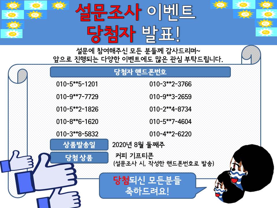 2020년도 온라인 주민 설문조사 이벤트 당첨 결과 발표! 작성자 등록일자 2020년 8월 6일 10시 7분 44초 조회 747 mm.jpg [ Size : 131.63KB , Down : 120 ] 미리보기 다운로드 목록보기