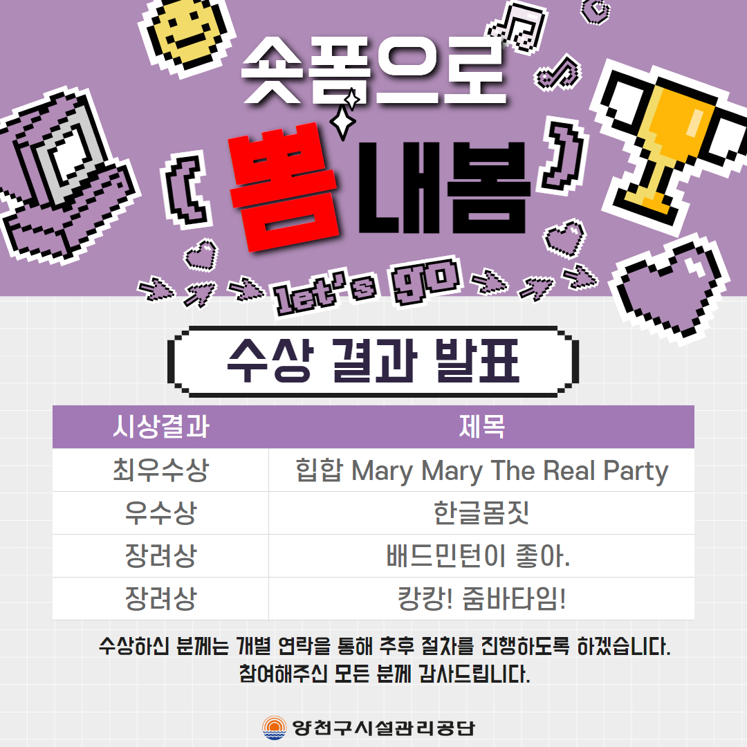 <양천구시설관리공단 숏폼으로뽐내봄 공모전 결과 발표 안내>