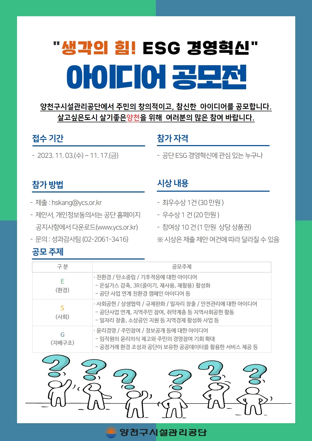 공모자격 : 양천구시설관리공단 ESG 경영혁신에 관심 있는 누구나