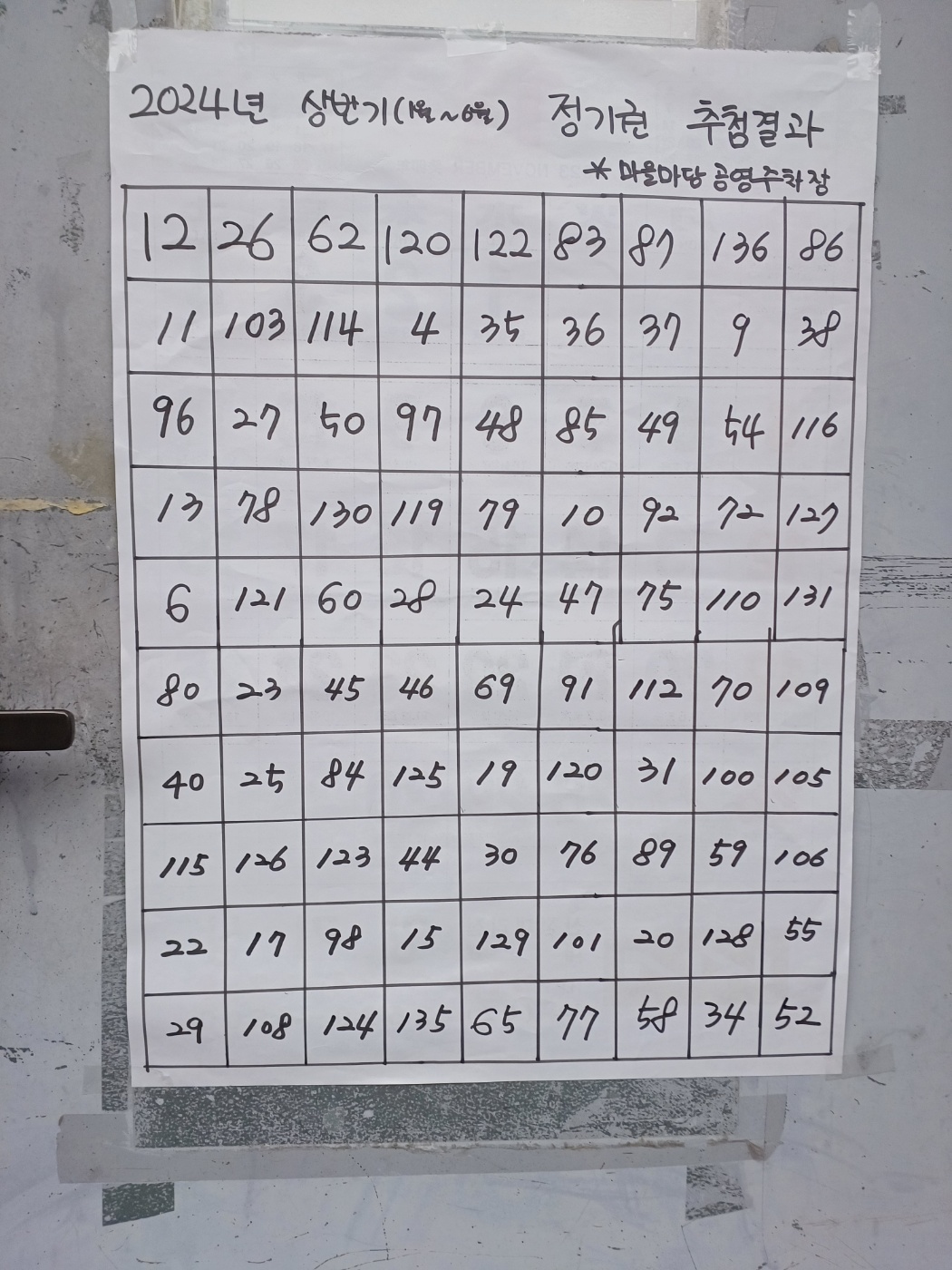 마을마당 24년 상반기(1월~6월) 정기권 추첨결과