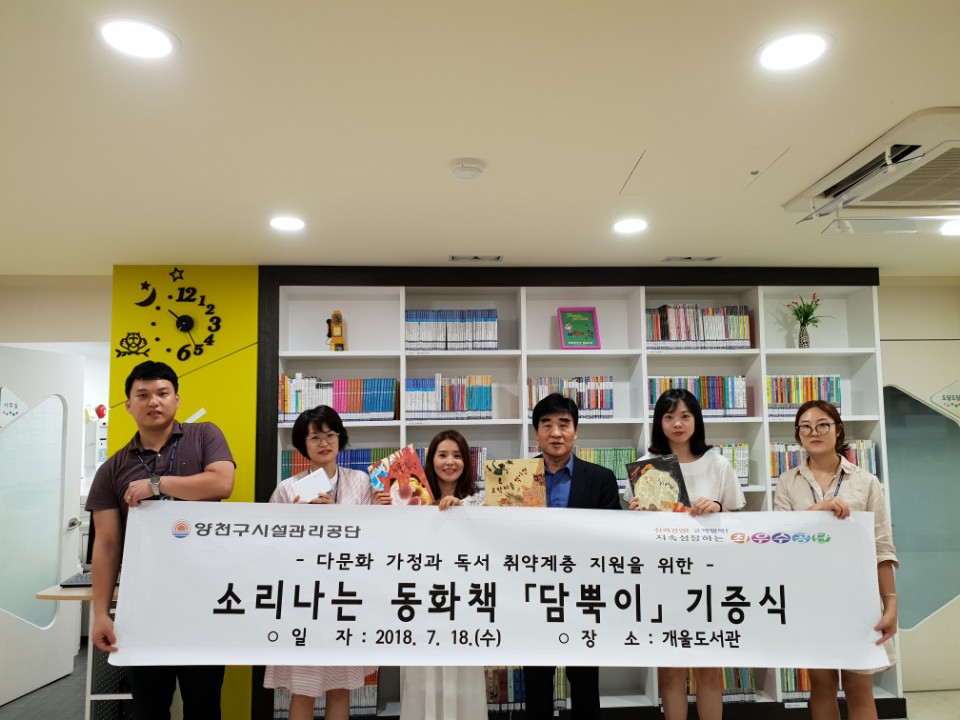 양천구시설관리공단, 다문화가정을 위한「소리나는 동화책」기증 작성자 등록일자 2018년 7월 26일 11시 43분 59초 조회 1,252 1532573037-71.jpg [ Size : 124.88KB , Down : 106 ] 미리보기 다운로드 목록보기
