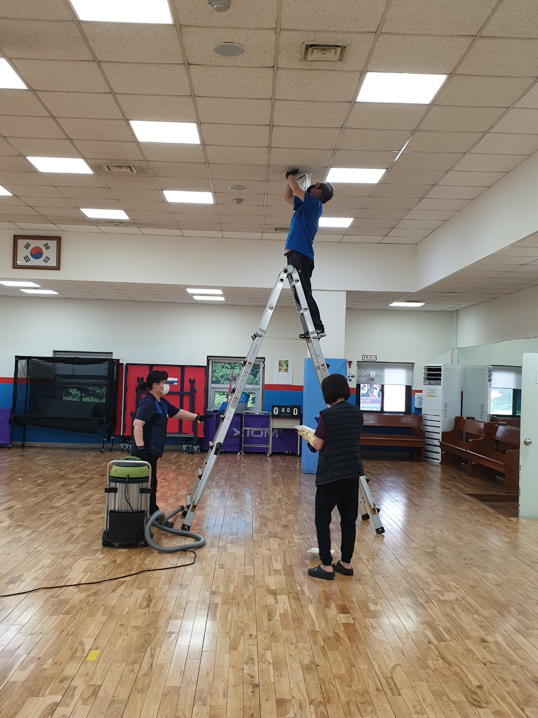 양천구민체육센터는 주민들의 건강을 책임지는 공공체육시설로 평소 안정성 확보를 위한 시설물 점검은 물론 보이지 않는 곳의 청결한 위생 상태를 유지하고자 정기적인 대청소를 진행하고 있다.