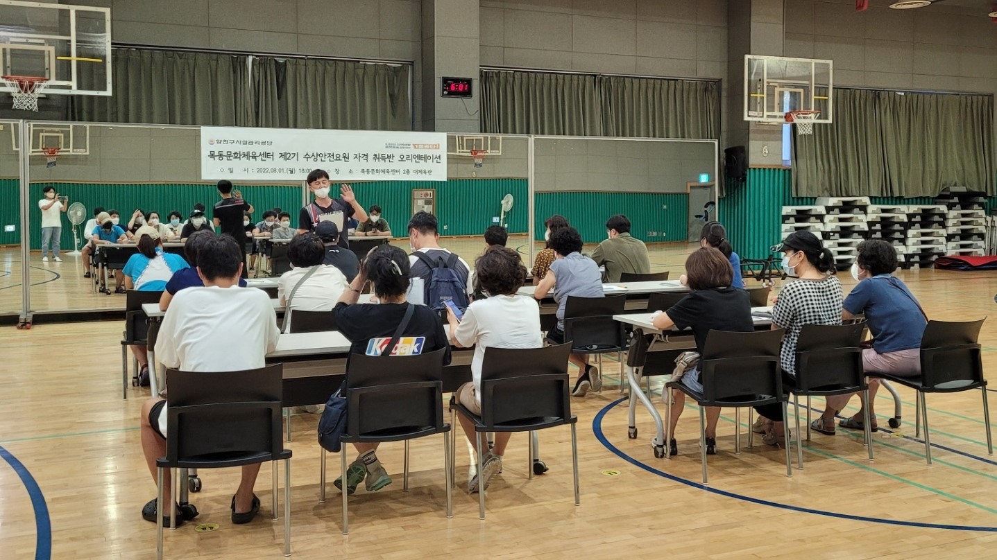 양천구시설관리공단(이사장직무대행 이광종)에서는 지역주민을 대상으로 3개 센터별로 8월 1일(월)부터 8월 19일(금)까지 자격 취득과 일자리 창출을 위해 제2기 수상안전요원 자격 취득반을 무료 운영 후 종료하였다고 밝혔다.