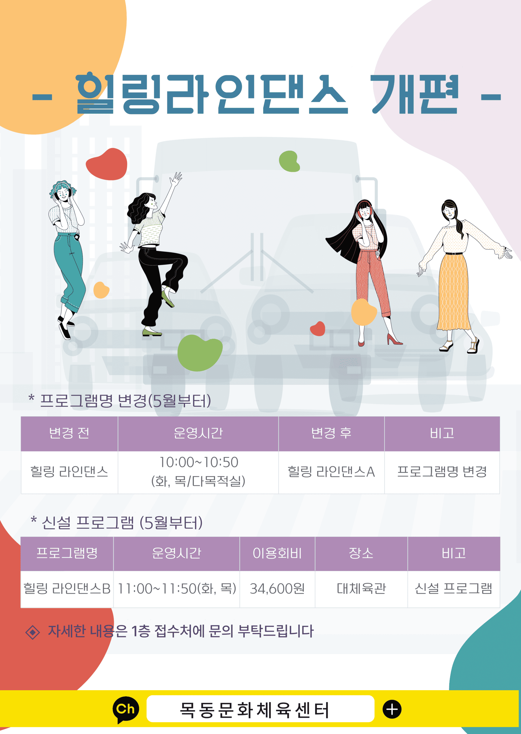 목동문화체육센터, 힐링라인댄스 프로그램 개편 안내