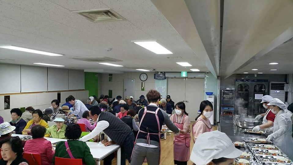 해맞이 도서관에 있는 경로식당은 2015년 10월에 리모델링 후 새롭게 개관해 하루 150여분의 어르신들에게 식사를 무료로 제공하는 곳이다.