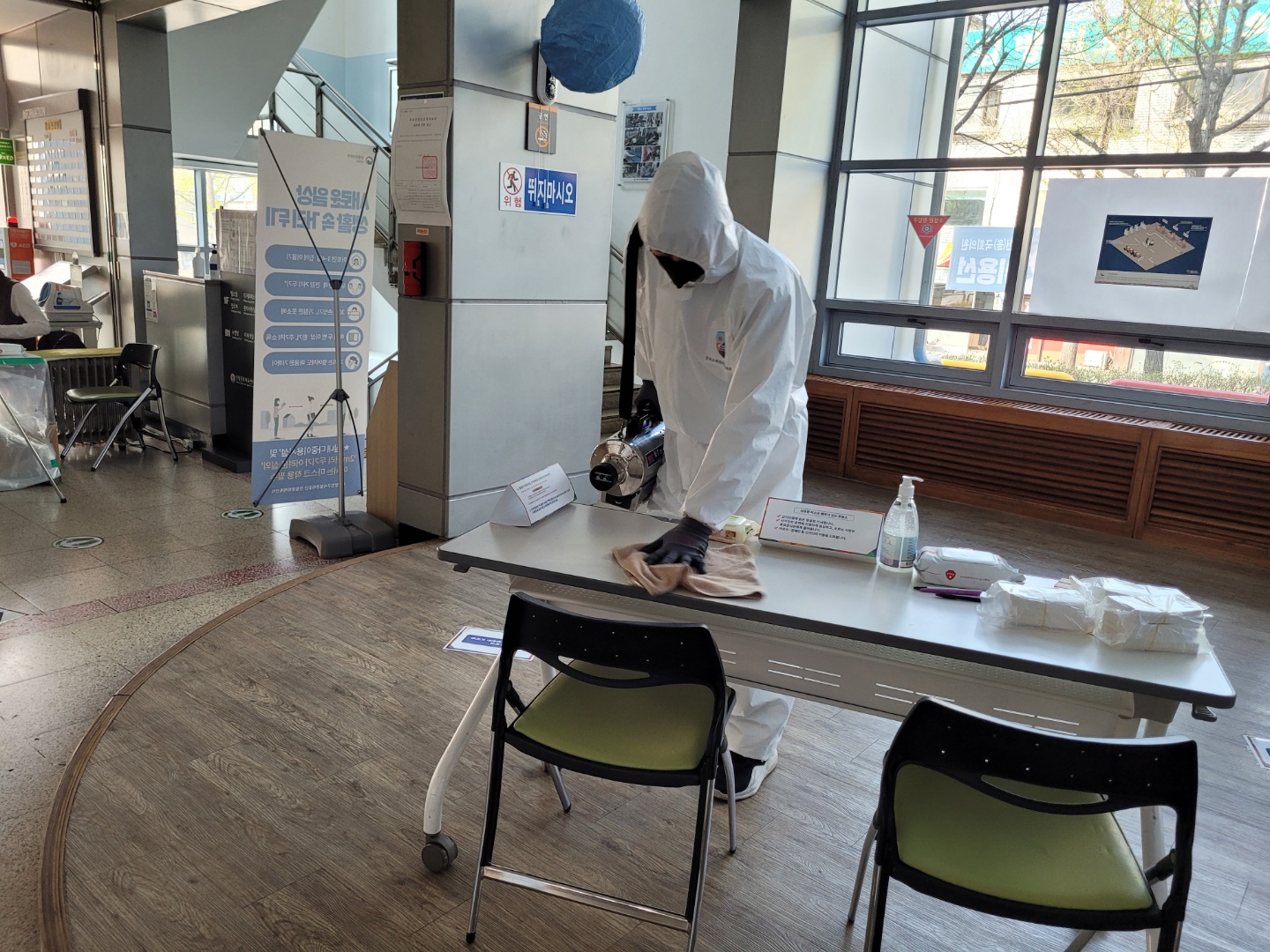 최근 코로나19 확진자 수가 다시 증가하고 있는 상황과 더불어 서울시장 보궐선거 투표장소로 사용된 곳이기에 수많은 주민들의 방문이 있어 혹시 모를 사태에 대비하여 철저한 방역을 진행하였으며, 쾌적한 환경 제공을 위한 실내청소와 기구소독 등도 함께 실시하였다.