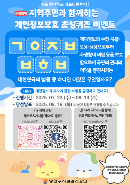양천구시설관리공단, 익월 13일까지 지역주민 대상 개인정보보호 퀴즈 이벤트 실시