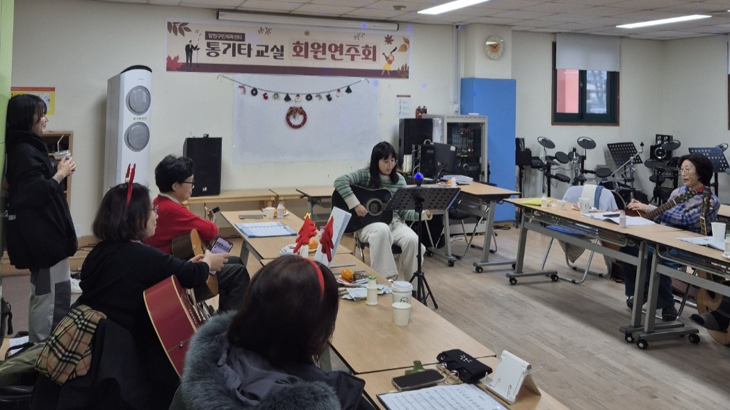 양천구시설관리공단(이사장 이용화) 양천구민체육센터는 지난 12월 17일(수), 통기타 교실 회원들이 그동안 갈고닦은 실력을 회원들과 함께 나누기 위해 ‘회원 연주회’를 개최하여 뜻깊은 자리를 마련했다고 밝혔다.