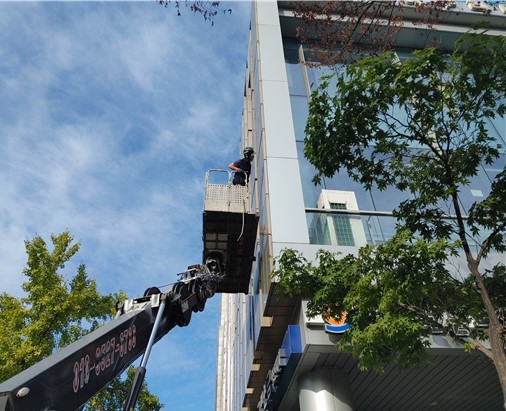 이번 보수공사는 해누리타운의 지상 1~9층 유리, 복합판넬 외벽 부분 실리콘 코킹 작업으로, 노후된 건물의 누수 예방을 목적으로 실시되었다.