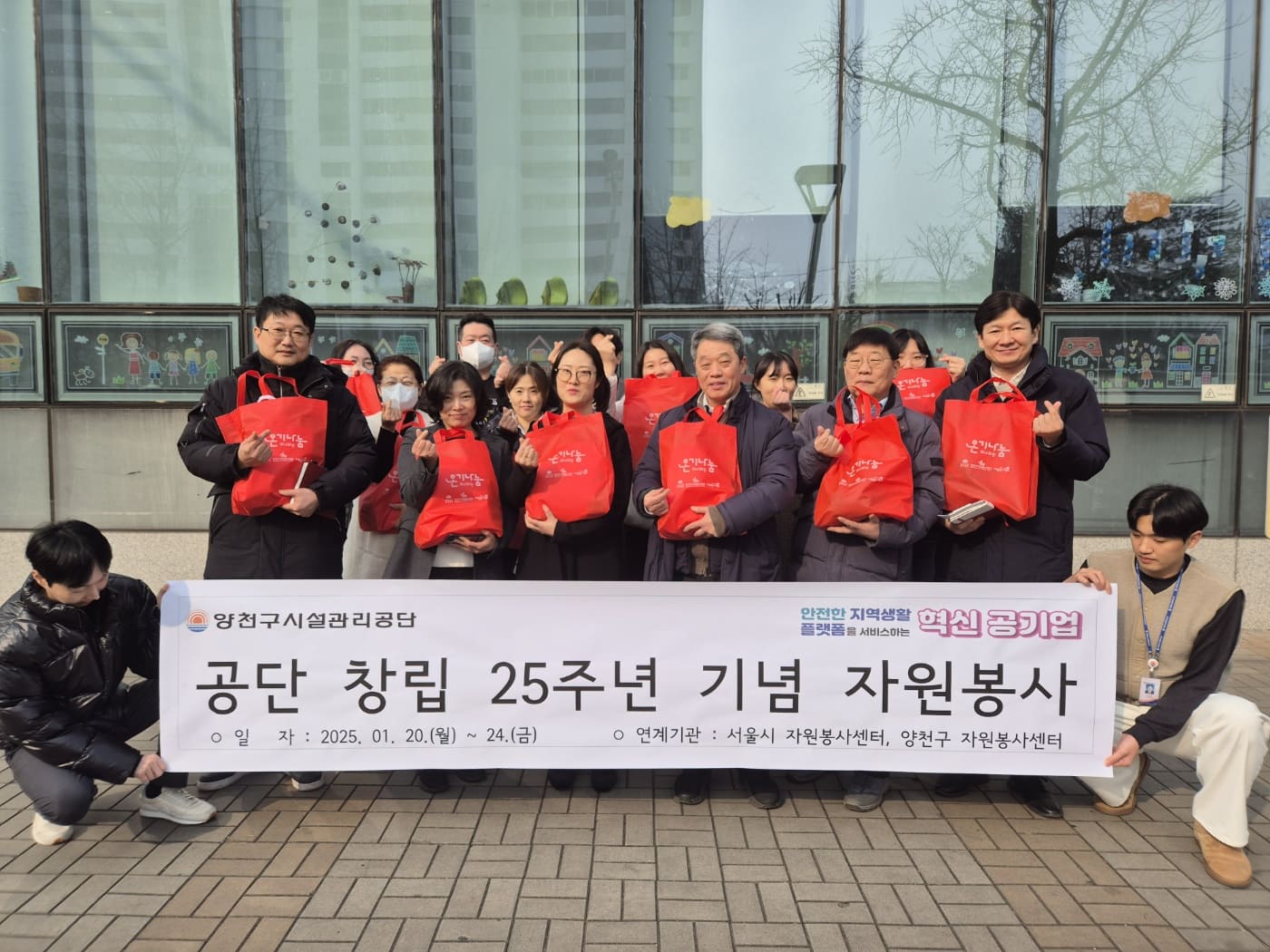 양천구시설관리공단(이사장 이용화)은 이번 1월 20일(월)부터 24일(금)까지 창립 25주년을 기념하여 서울시 자원봉사센터 및 양천구 자원봉사센터와 연계하여 지역사회 취약계층을 위한 기부물품을 전달하는 특별한 사회공헌 활동을 진행했다고 밝혔다.