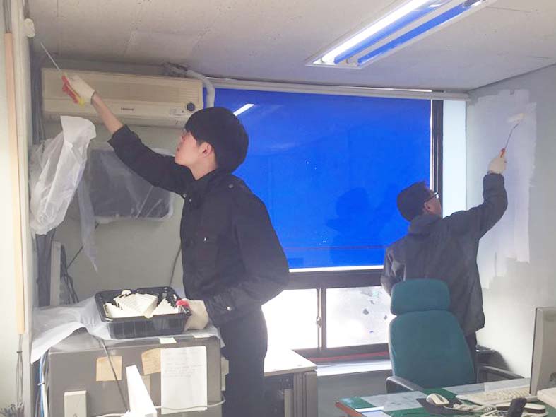 | 양천구시설관리공단(이사장 김덕수) 주차사업팀은 4월15일(토) 쾌적하고 밝은 주차장을 고객들에게 제공하고자 목동주차장 관리사무실 내·외부 도색작업을 실시하였다. 어둡고 칙칙했던 목동주차장 관리사무실 벽면과 천장을 밝은 색으로 전면 재도색 하였으며, 미관이 저해된 외벽에 포인트 라인작업도 실시하였다. 또한 청결한 환경을 위해 일부 집기도 교체하였다. 이번 작업은 주차장 관리사무실 내 이용고객이 적은 휴일에 직원들이 직접 발 벗고 나서서 실시하였다. 주차사업팀 관계자는 “이번 도색작업뿐만 아니라 고객이 더욱 쾌적한 환경에서 주차시설을 이용할 수 있도록 환경관리에 지속적으로 개선해 나갈 것이다”고 말했다. |