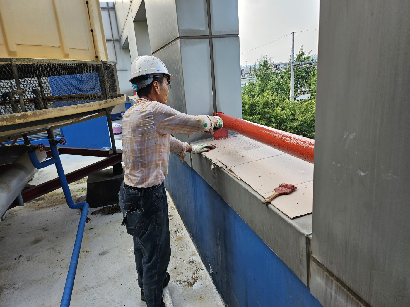 이번 환경 정비는 △안전사고 사전예방을 위한 기계실 바닥 노후 관련 페인트 제거 및 바닥 균열 보수작업과 페인트 하도 및 상도(에폭시) 도색 실시, △ 옥상 추락 방지를 위한 난간 도색 및 바닥 페인트 도색 작업을 실시했다.