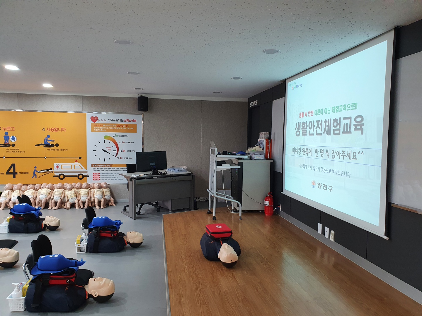 양천구시설관리공단(이사장 조주연) 양천구민체육센터는 전 직원을 대상으로 5월 9일(월)부터 안전체험관에서 실시하는 안전교육을 실시하였다고 밝혔다. 이번 교육은 화재와 재난 및 응급상황에서 직원들의 대처능력을 강화하기 위해 마련되었다. 양천센터 전 직원은 연 2회 이상 꾸준히 교육을 받아오고 있다. 교육은 ▶심폐소생술 및 자동심장충격기 사용법, ▶하임리히법, ▶소화기 사용법 및 화재대비 요령, ▶완강기 사용법, ▶가스 및 전기 안전체험 등의 순서로 이루어졌으며, 다양한 체험을 통해 몸소 익히는 시간을 가졌다. 양천센터 관계자는 “언제 어디서 발생할지 모르는 응급 상황 시 당황하지 않고 가족과 이웃의 생명을 살릴 수 있도록 교육과 훈련을 지속 실시하겠다.”고 말했다.