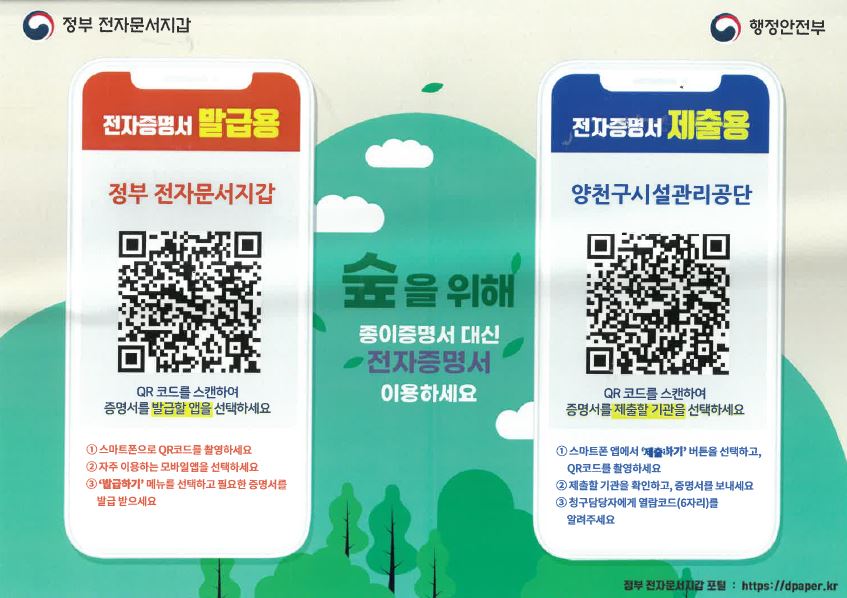 양천구시설관리공단(이사장직무대행 이광종)은 정부24 전자문서지갑 포털에서 전자
