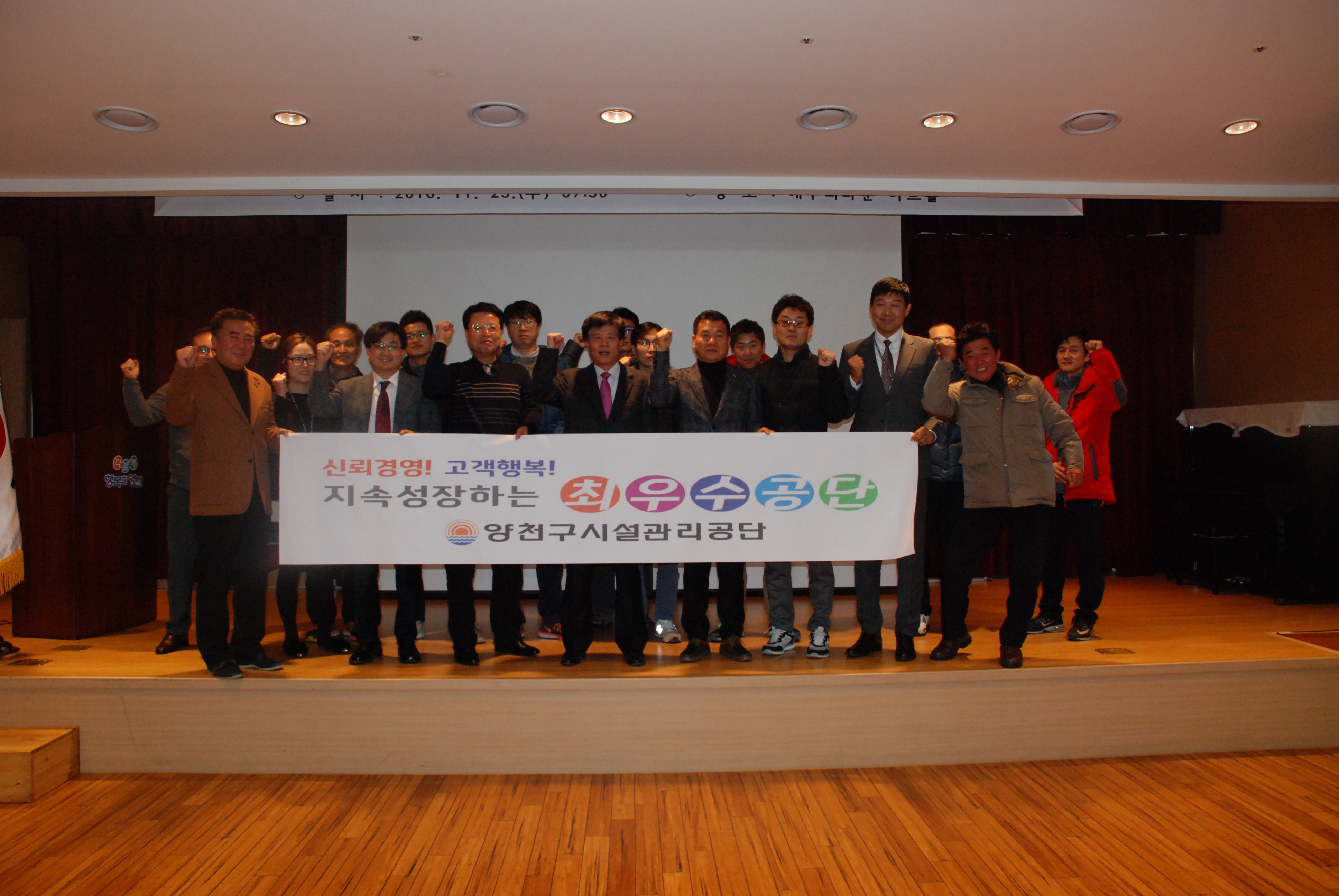 양천구시설관리공단(이사장 김덕수)은 지난 23일 해누리타운 아트홀에서 고객의 행복지수를 높이고 신뢰받는 공단이 되겠다는 의지를 표현한 새로운 미션과 비전을 선포하는 행사를 개최했다.