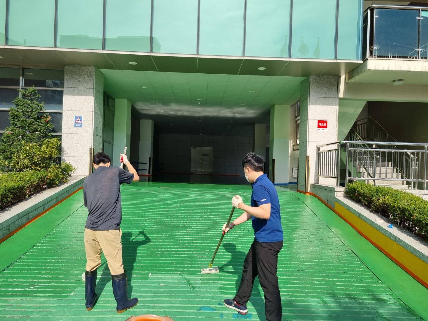 양천구시설관리공단(이사장 조주연) 목동문화체육센터는 9월 14일(목),옥내주차장 바닥 들뜸 현상 보수와 경사로 미끄럼 방지를 위한 바닥 에폭시 도장 및 논슬립 작업을 실시하였다고 밝혔다. 목동센터는 이번 작업에서 △옥내 주차장 구획선을 재도장, △바닥 에폭시 라이닝 도포, △경사로에 대한 연삭 청소 및 논슬립 도포 등을 실시하였다. 모든 과정은 목동센터 자체인력을 활용하여 진행하였다. 직원들은 안전한 주차장 관리를 위한 구슬땀을 흘려가며 보수 작업을 완료하였다.