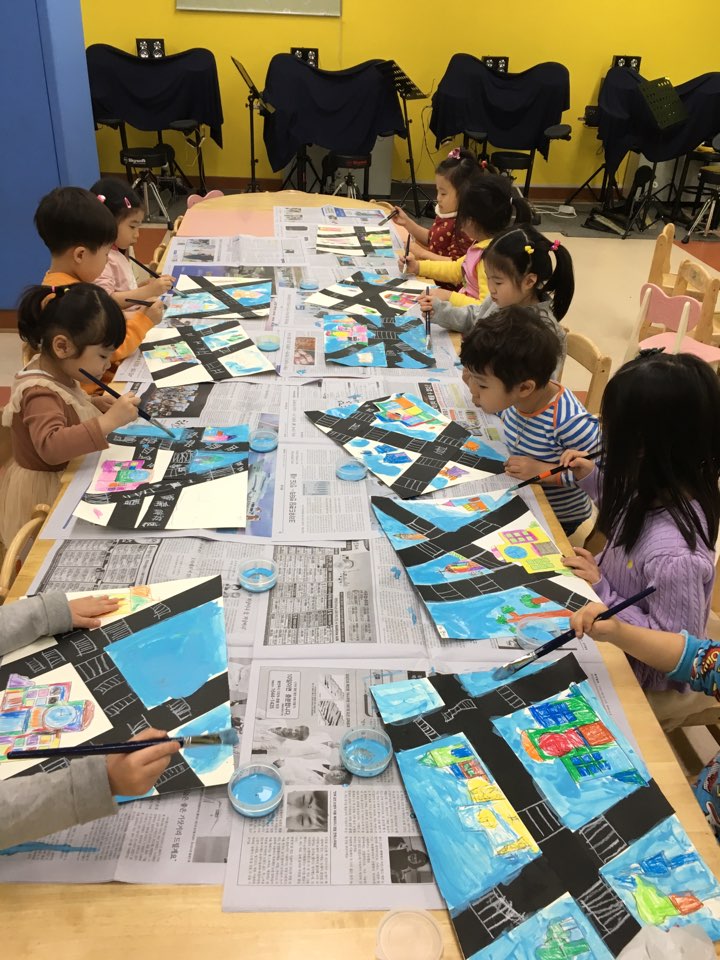 유아미술교실에서는 여러 가지 주제를 그림으로 표현하는 1∼2차 수업, 다양한 도구와 기법을 통한 3주차 만들기 수업, 마지막 4주차 수업에는 구성과 집중력을 키우는 종이접기 수업으로 다양하게 진행된다.