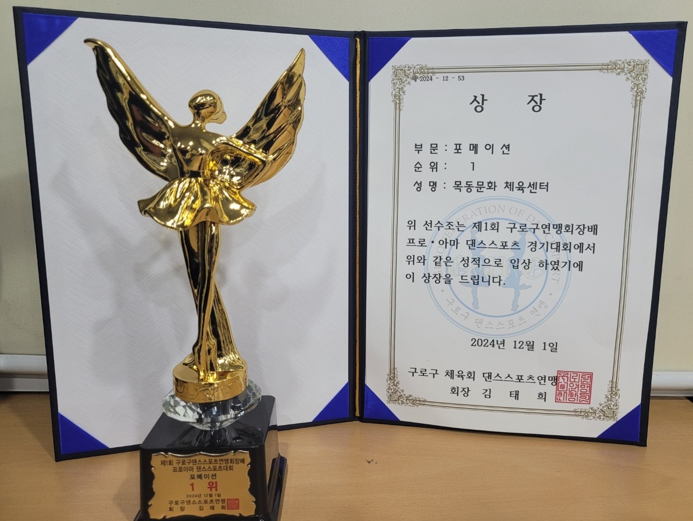 양천구시설관리공단(이사장 박태문) 목동문화체육센터는 지난 1일, 권안나 라인댄스 회원들이 ‘제1회 구로구연맹회장배 프로·아마 댄스스포츠 대회’에서 ‘라인댄스 포메이션 부문 1위’를 차지하는 영예를 안았다.