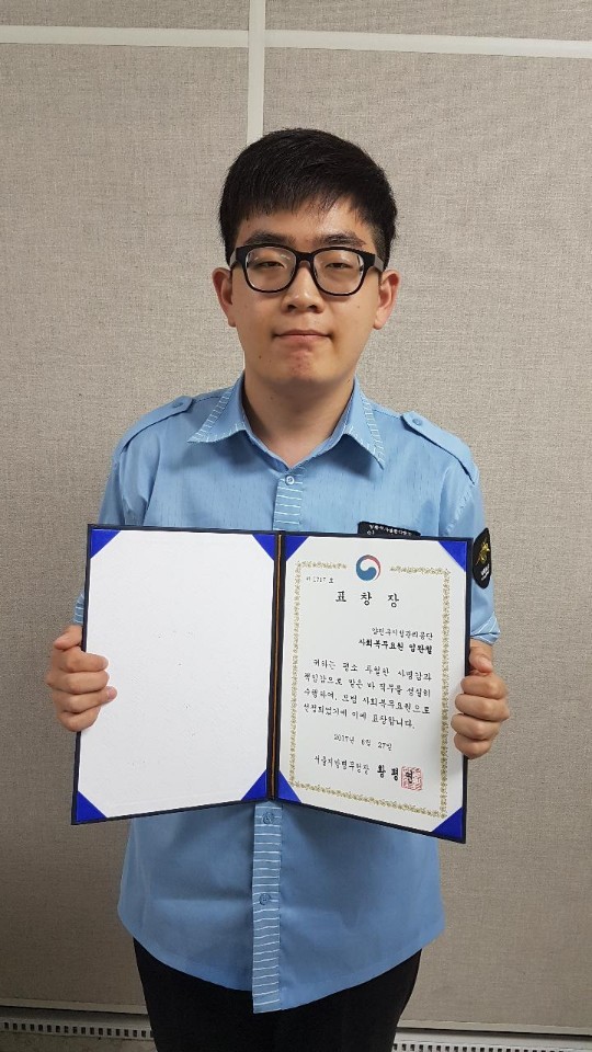 임완철군은 평소 투철한 사명감과 책임감으로 맡은 바 직무를 성실히 수행해 타의 모범이 되어 이 같은 큰 상을 받을 수 있었다.