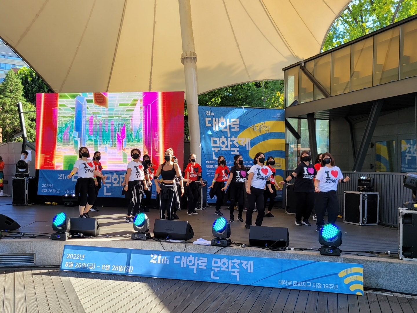 8월 28일(일) 오후 1시부터 3시까지 마로니에공원에서 대학로 문화축제 추진위원회 주최, 주관으로 프로그램 줌바 페스티벌이 개최되었다.