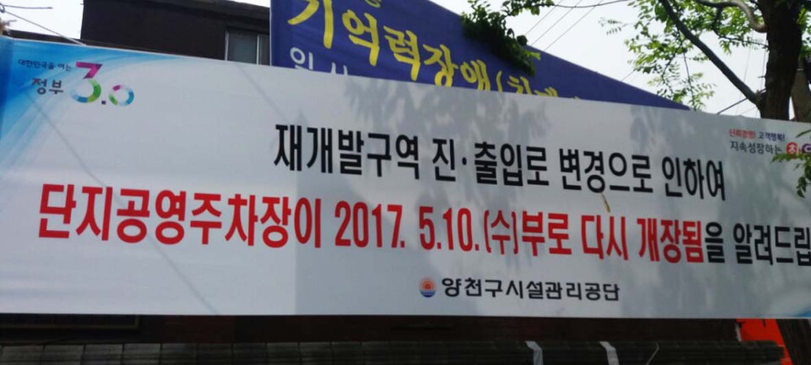 양천구시설관리공단은 10일부터 단지공영주차장(신정3동 1182-9) 재개장에 들어갔다. 단지공영 주차장은 40구획으로 운영시간은 월~토요일 09시부터 19시 까지며, 주차요금은 5분당 150원 월정기권은 7만원이다.