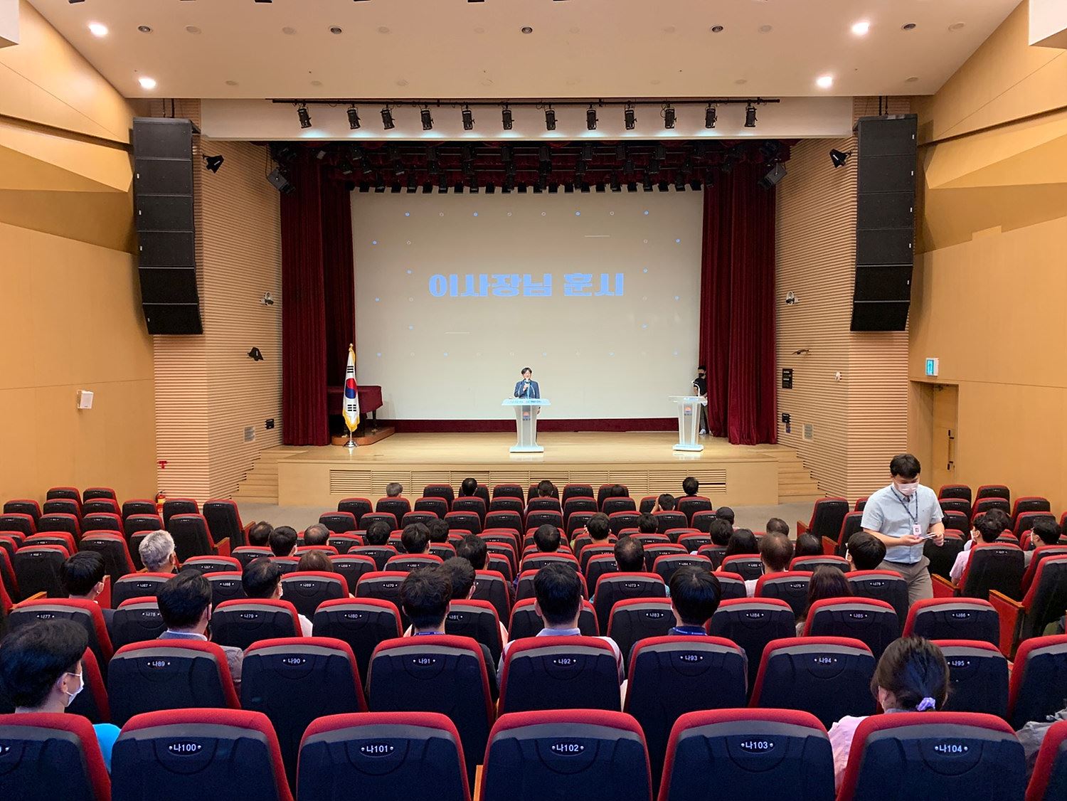 양천구시설관리공단(이사장 조주연)은 5월 26일(목), 해누리타운 2층 해누리홀에서 직원 정례조례 및 제24회 경영혁신아카데미를 개최하였다고 밝혔다. 이번 정례조례는 사회적 거리두기 조치 해제에 따라 전 직원 대상 집합행사 형식으로 진행되었다. 공단본부 및 각 사업장에서 근무하던 직원들은 오랜만의 만남에 서로 반가워하는 분위기였다. 이 날 해누리홀에는 필수요원을 제외한 직원 109명이 참석하였다. 행사는 국민의례를 시작으로 이사장 훈시, 직원교육 순으로 진행되었다. 조주연 이사장은 인사말에서 그간 공단이 꾸준히 성장해 온 점과 노사갈등 없이 일하기 좋은 환경을 조성한 것에 대한 공을 직원들에게 돌렸다. 또한 앞으로도 지속적으로 발전하는 지방공기업이 될 수 있도록 끊임없는 노력을 당부하였다. 행사의 마지막 순서로는 박미애 강사의 4대폭력 예방에 대한 교육이 진행되었다. 행사에 참석한 공단 직원은 “오랜만에 전 직원이 모이는 행사에 참여하게 되어 감회가 새롭다.”며, “최우수 지방공기업 타이틀을 유지할 수 있도록 지속적인 연구와 가치 창출을 위하여 힘쓰겠다.”고 말했다. ※ 문의: 성과감사팀(☎02-2061-3416) |