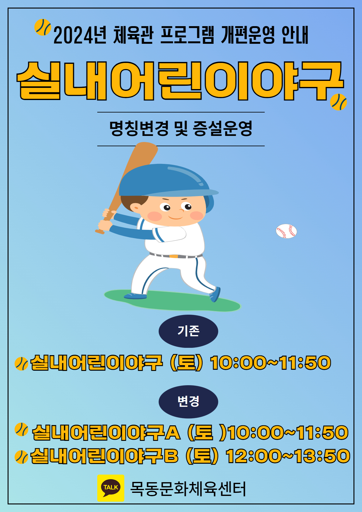 목동문화체육센터, 실내 어린이 야구 프로그램 개편 운영