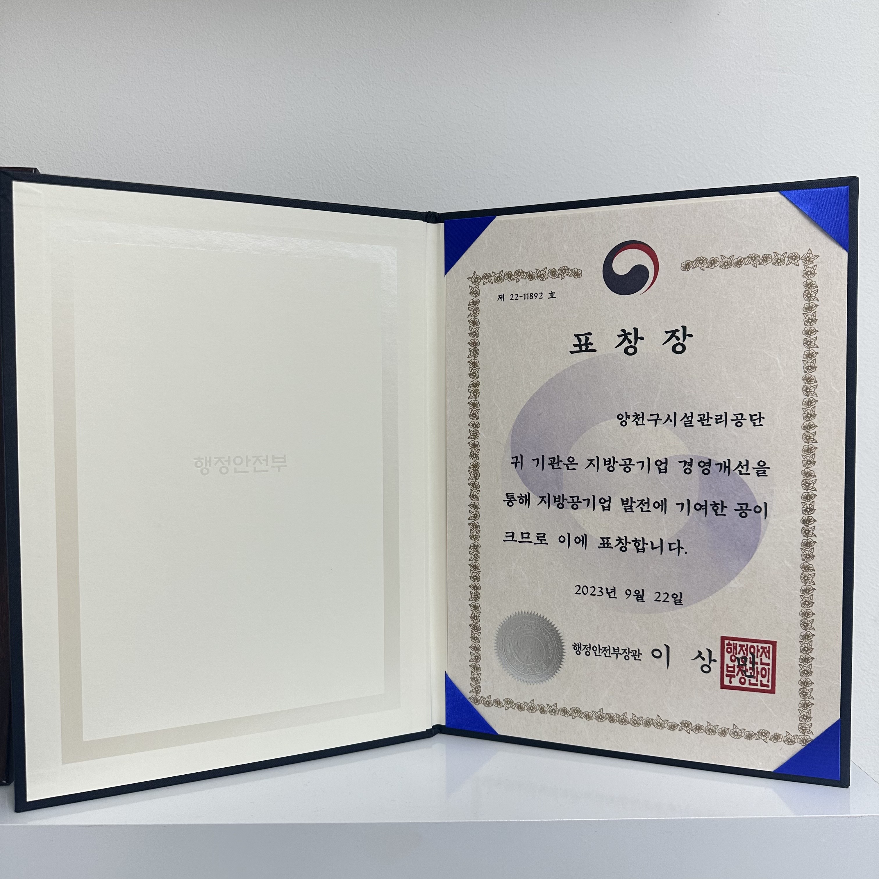양천구시설관리공단, '행정안전부장관 표창' 수상