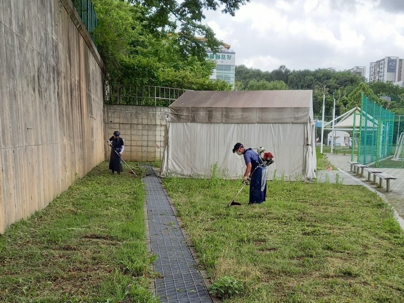양천구시설관리공단(이사장 조주연)에서 운영하는 해누리체육공원에서는 하절기를 대비하여 이용 고객들의 안전을 위해 환경정비를 실시하였다고 밝혔다. 야외 체육공원의 특성상 하절기에는 잡초들이 무성하여 체육공원의 미관을 해치고, 전염병의 매개체인 모기가 기승을 부린다. 이로 인해 이용객들이 불쾌감을 느끼고 안전을 위협할 수 있어 하절기에는 체육공원 관리의 주요사항 중의 하나이다. 따라서 해누리체육공원 직원들은 예약 인원이 없는 낮 시간을 활용해 화단 및 주차장 예초작업을 실시하였다. 축구, 풋살 등 야외 체육활동을 하는 이용객들의 편의를 위해 무더운 날씨에도 불구하고 열정적으로 작업에 임하였다. 공단 관계자는 “체육공원이 국민생활 건전한 여가활동 및 건강 증진의 주요 시설인 만큼, 이용객의 편의와 안전, 위생관리를 위해 최선을 다하겠다.”고 전 했다. ※ 문의 : 해누리체육공원(☎2652-3453) |