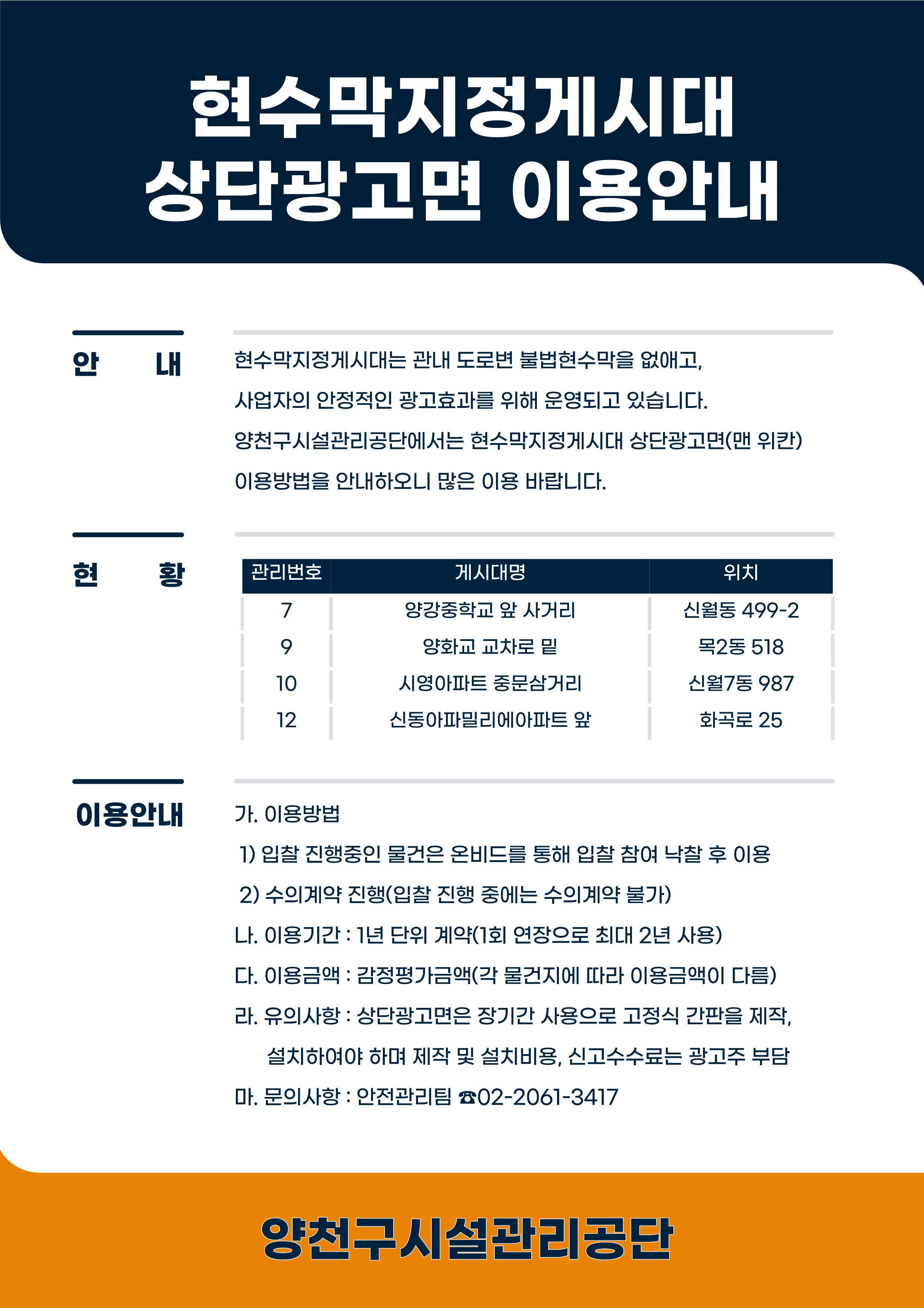 양천구시설관리공단, ‘현수막 게시대 상단 광고면’ 접수중!