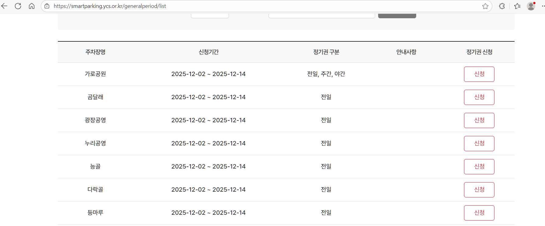 공영주차장 【답변완료】 2025년 하반기 정기권 온라인 신청 관련 문의